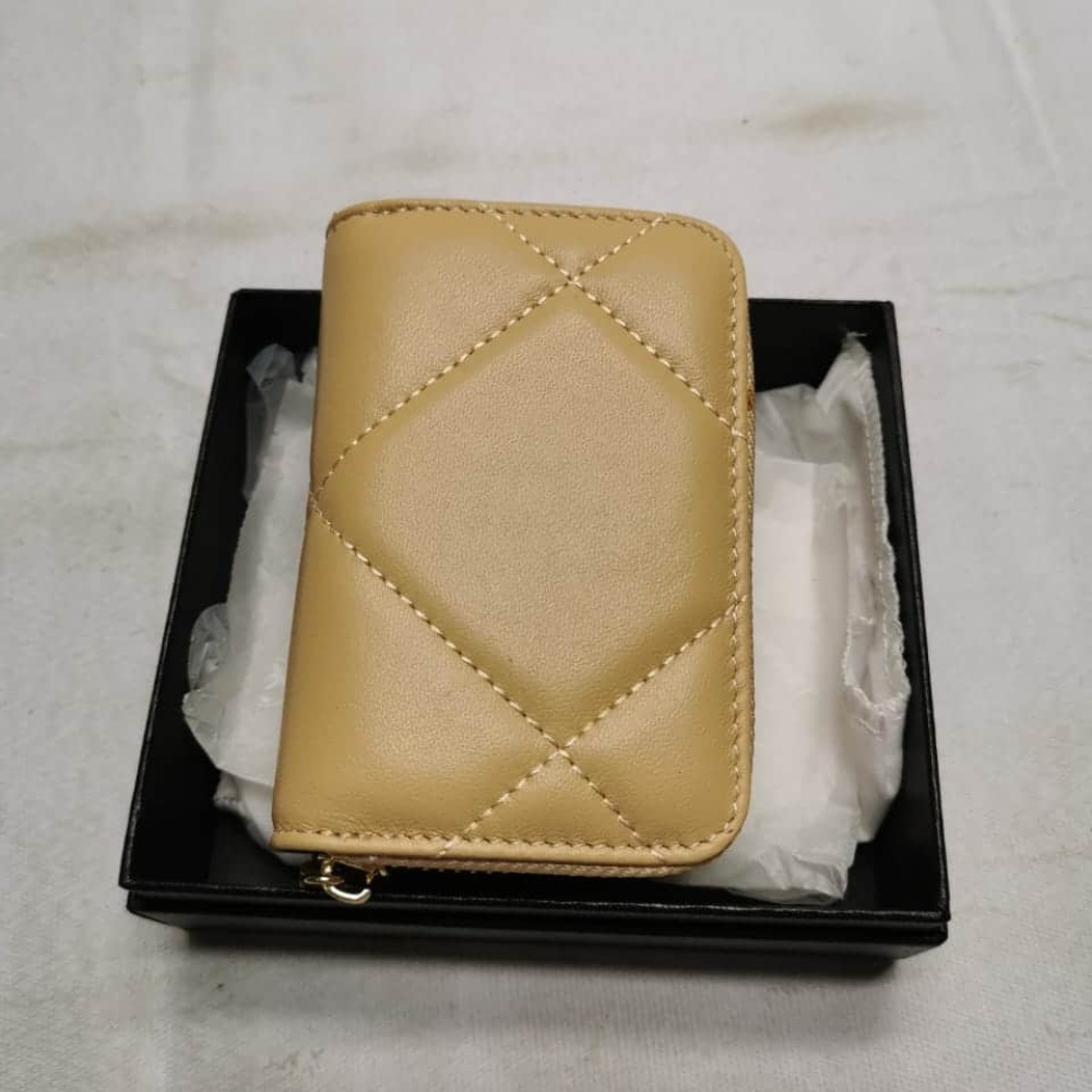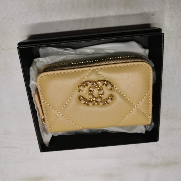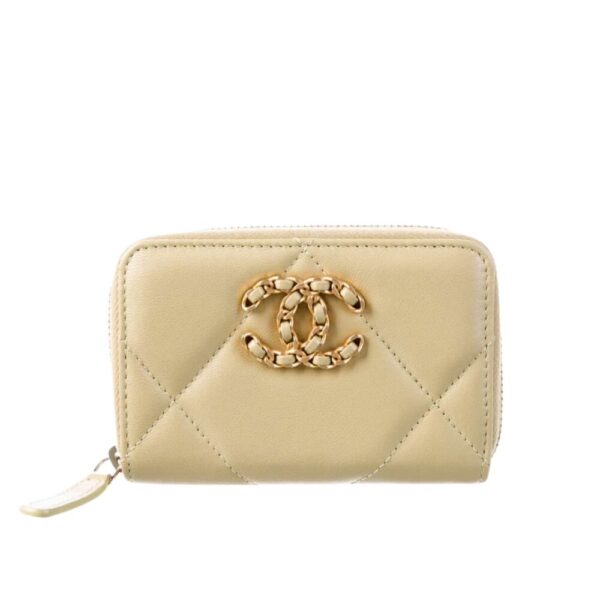 Chanel 19 Card Holder With Zipper Leather Beige Wallet