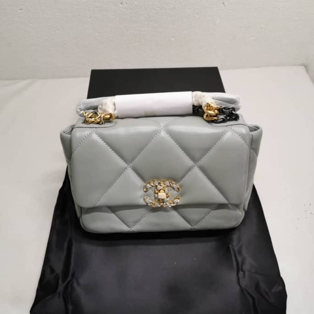 The Chanel 19 Flap Bag in light grey redefines modern elegance with its bold quilting and luminous dual-tone chain. Effortlessly sophisticated, it radiates prestige and timeless allure, making it the ultimate statement of refined luxury.