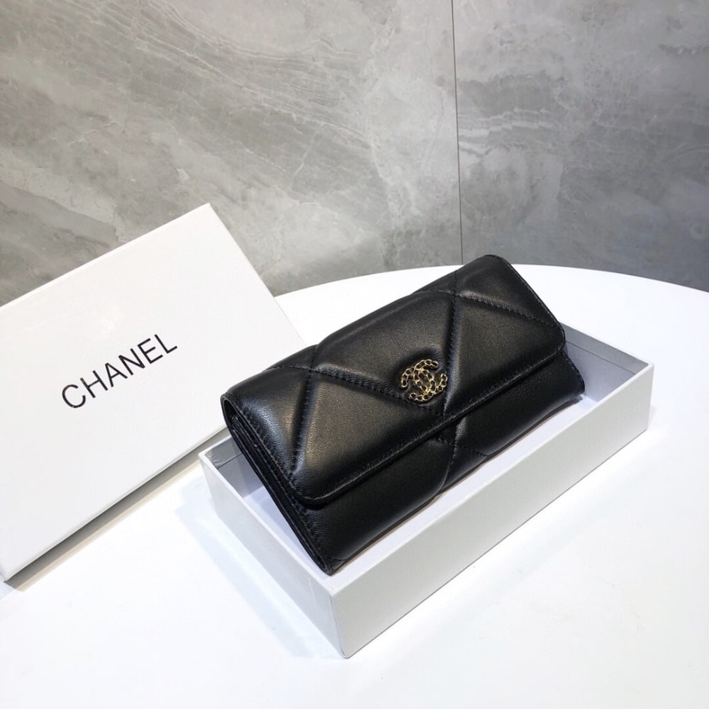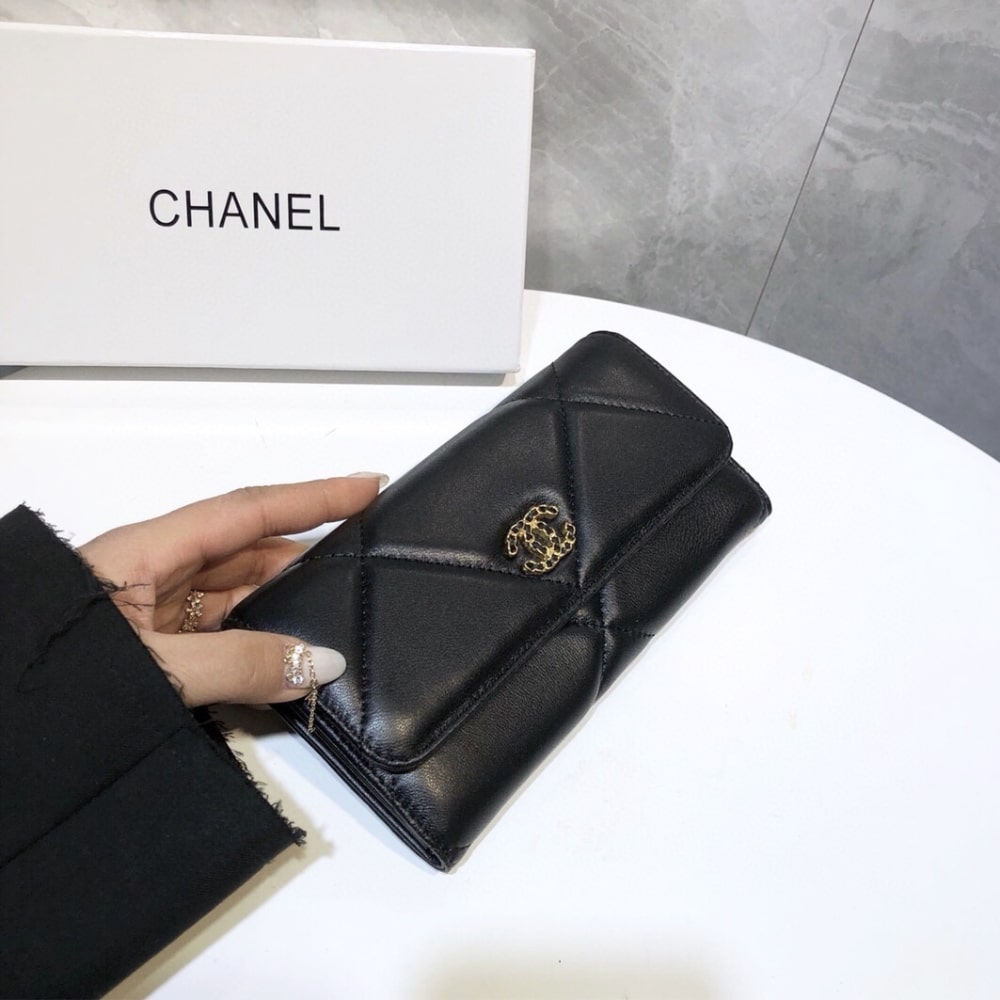 Chanel 19 Flap Long Wallet Black