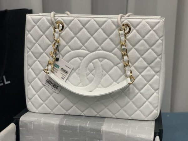 The Chanel Bolsa Grand Tote Bag White embodies effortless sophistication with its spacious form and timeless quilting. Adorned with gleaming chain details and the signature CC, it radiates elegance and prestige—an essential statement piece for women who carry luxury with confidence.