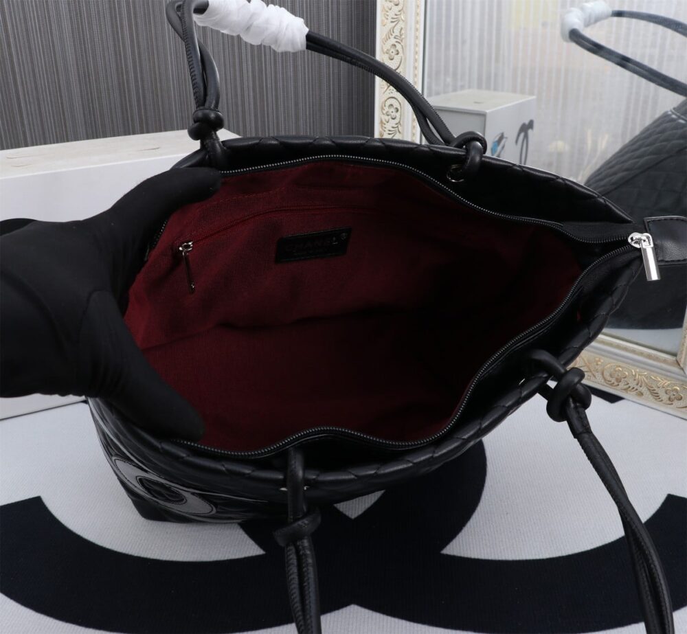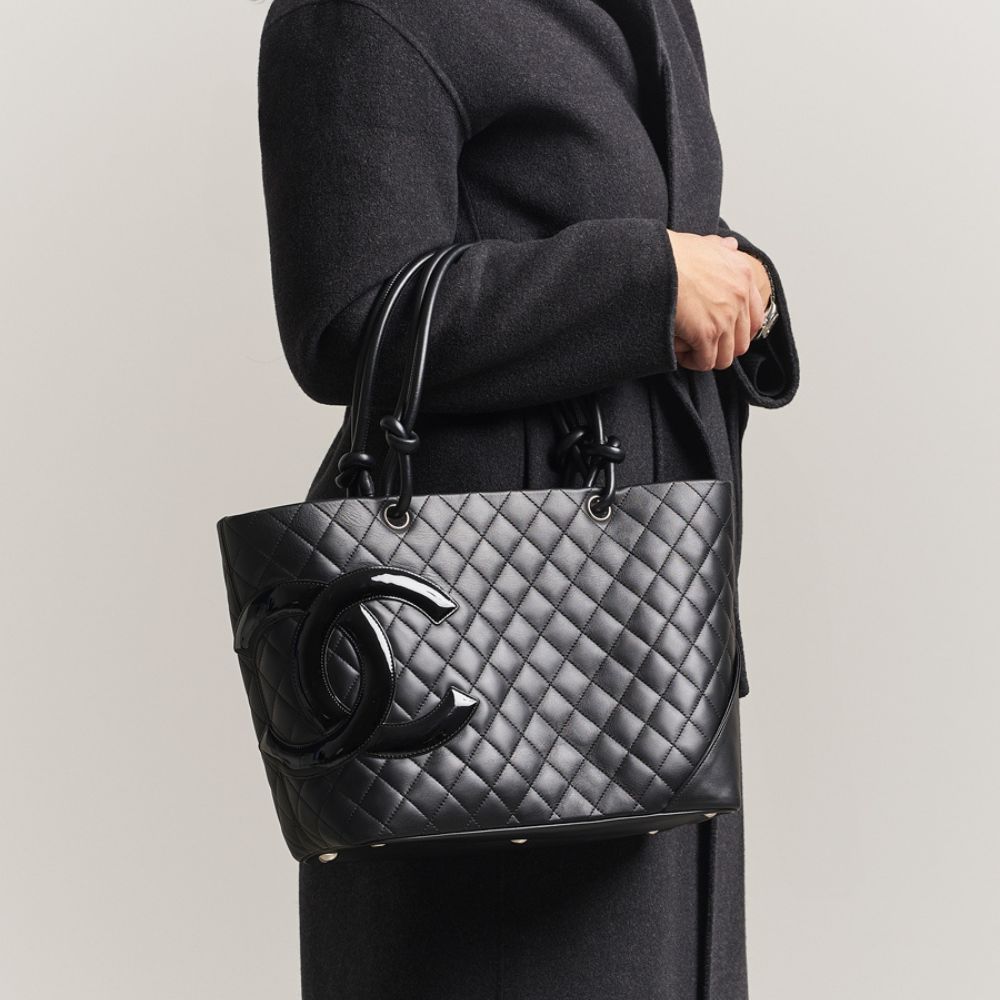 The Chanel Large Cambon Tote in black is a striking statement of timeless elegance, defined by bold contrasts and the unmistakable double C emblem. Its iconic quilted design and refined silhouette embody effortless sophistication, elevating your style with every step.