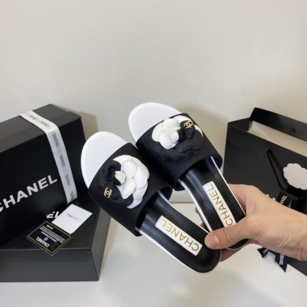 The Chanel Camellia Slides in Black and White capture timeless allure with the Maison’s signature flower, exuding a refined balance of boldness and grace. Their sleek design and effortless comfort elevate any look, affirming sophistication and modern prestige with every step.