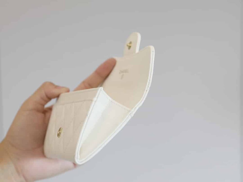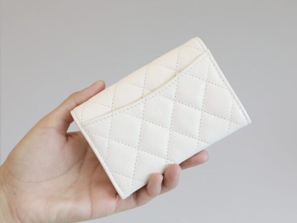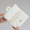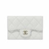 The Chanel Classic Card Holder Wallet in white captures timeless elegance in a compact form, its clean lines and iconic quilting radiating sophistication. An emblem of prestige, it elevates even the simplest gesture into a statement of style and refinement.