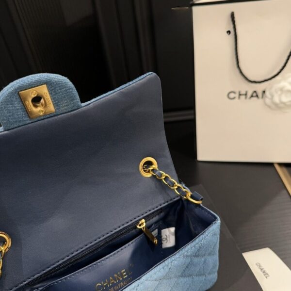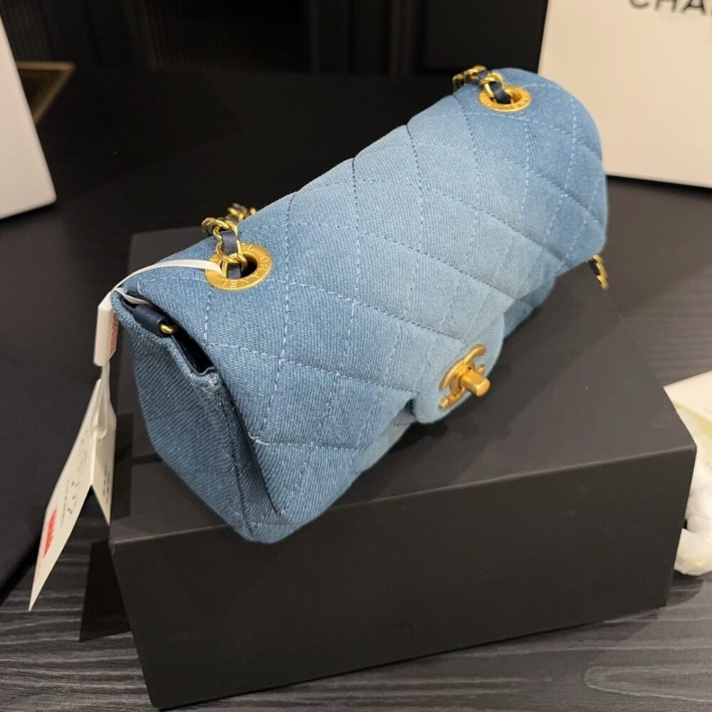 The Chanel Classic Handbag in washed blue with gold-tone accents brings a fresh, modern twist to an eternal icon, blending casual chic with timeless sophistication. Radiating effortless elegance, it affirms your individuality while carrying the unmistakable prestige of Chanel.