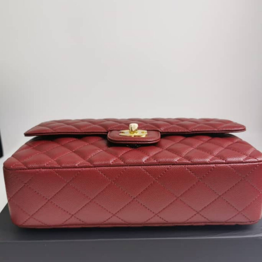 The Chanel Medium Classic Double Flap in burgundy with gold hardware exudes powerful elegance and striking allure. A true statement of prestige, it elevates every look with iconic sophistication.