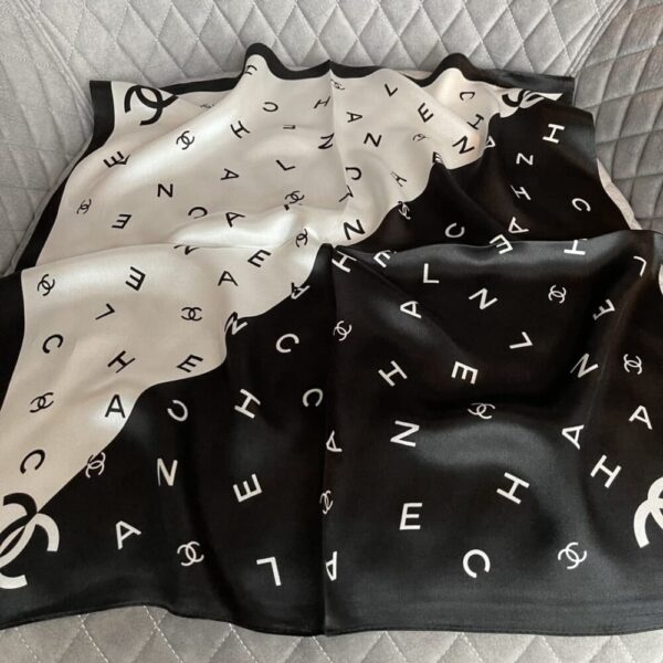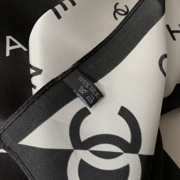 Chanel Multi Letters Square Silk Scarf Black White