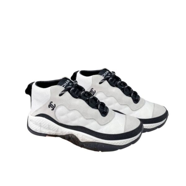 The Chanel Plain Logo Sneakers in White redefine sporty elegance with bold lines and a striking silhouette. Designed for comfort and prestige, they merge iconic sophistication with modern energy, elevating your style with every step.