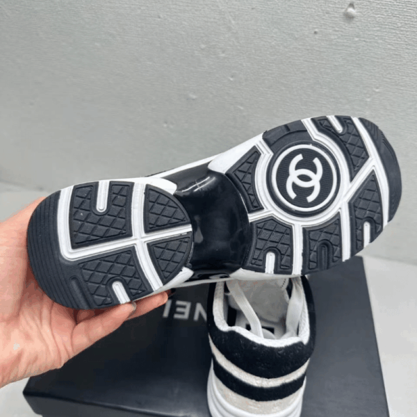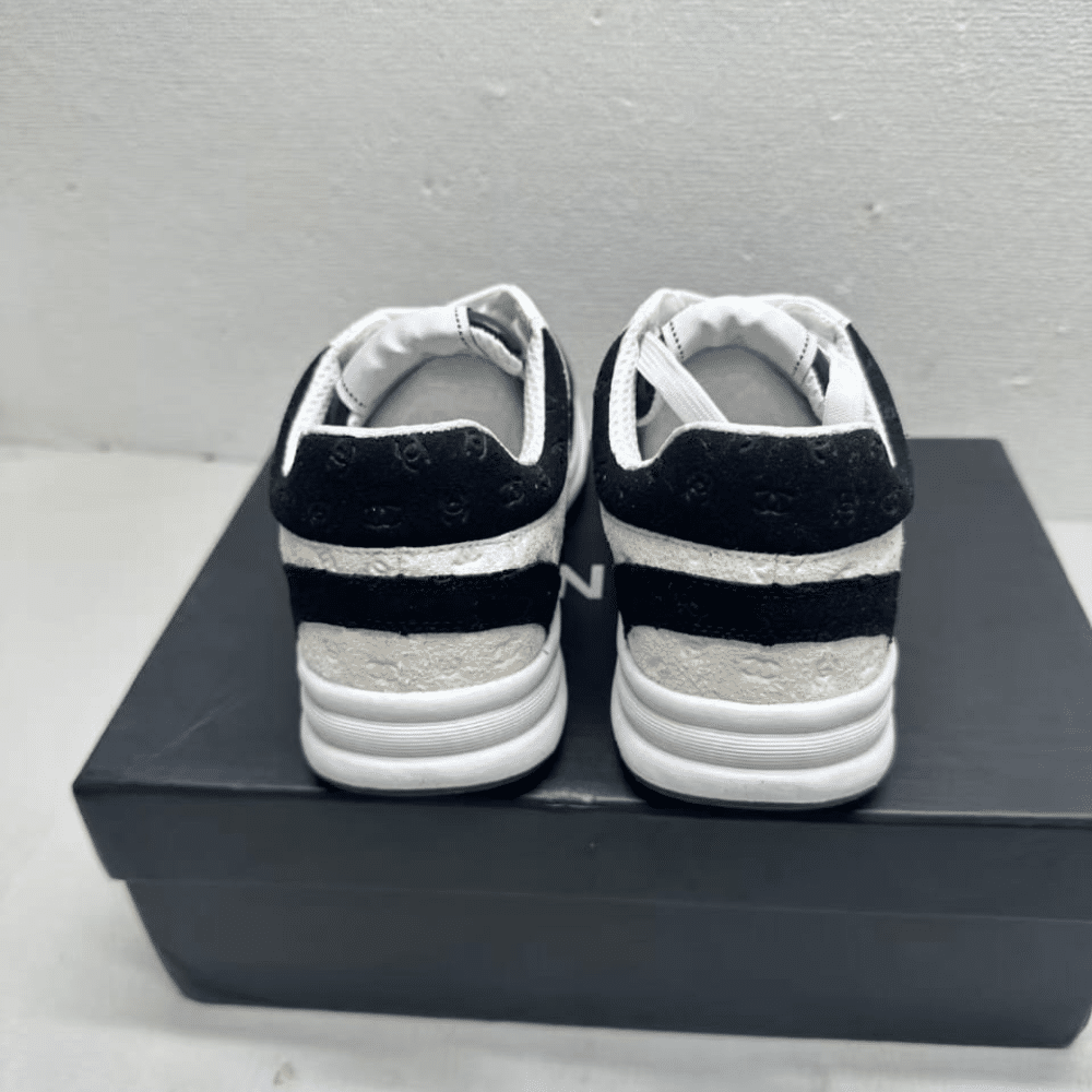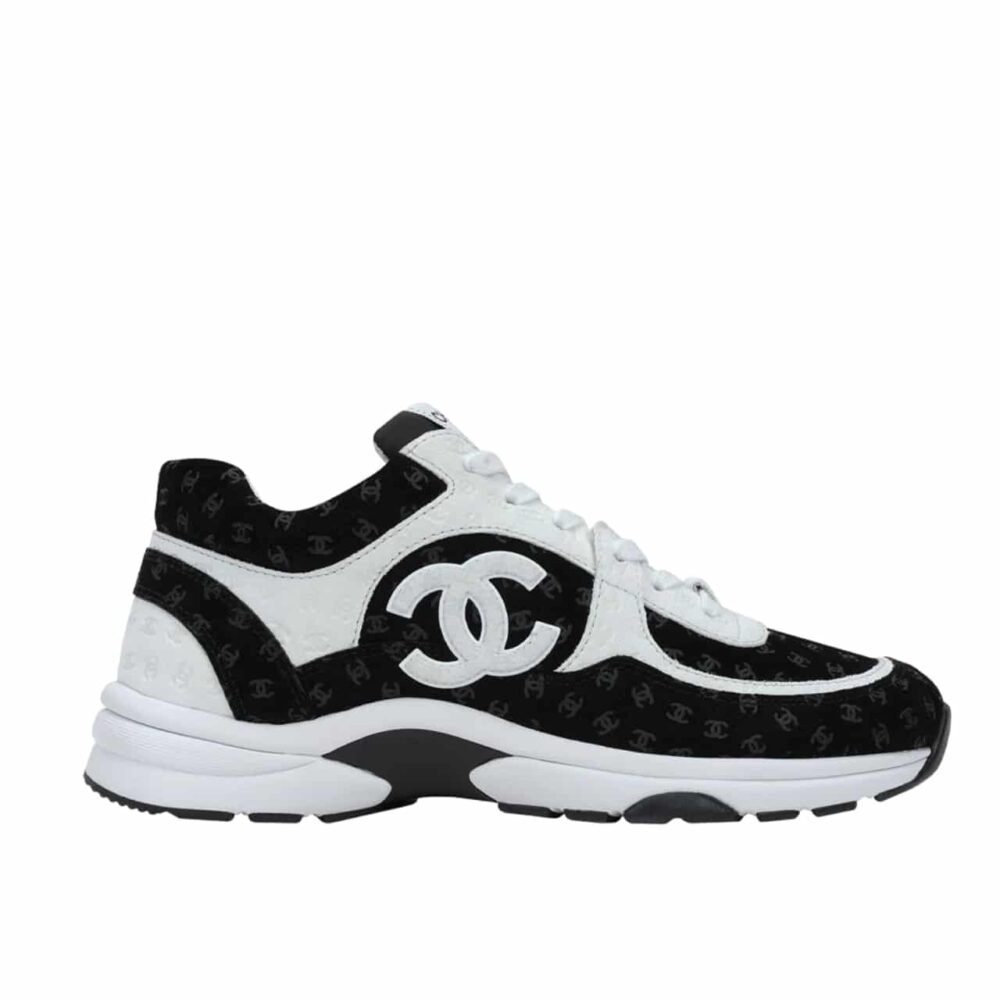 Chanel Printed Suede Calfskin Sneakers White And Black