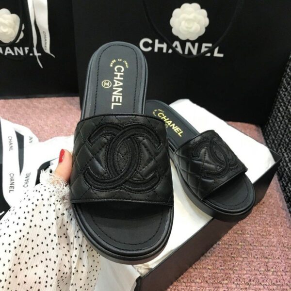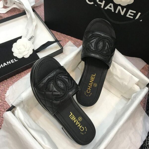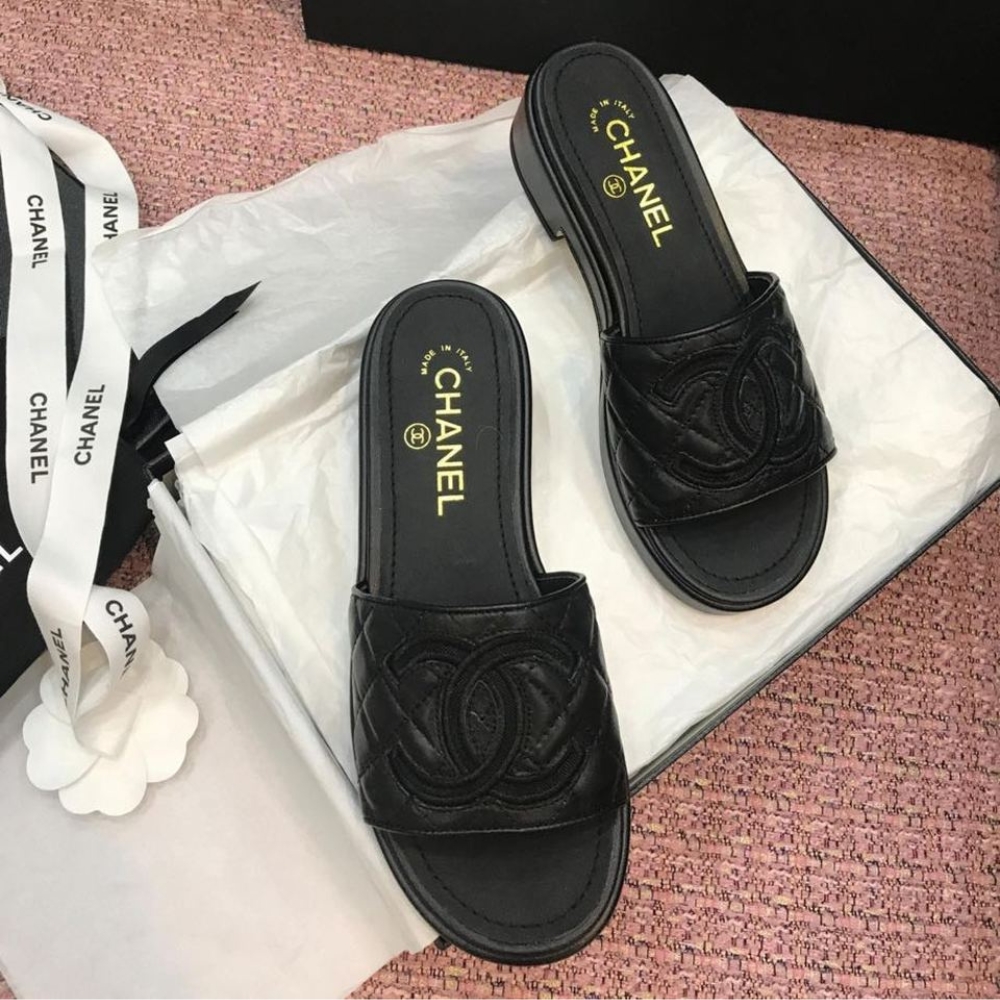 Chanel Quilted CC Logo Mules Black