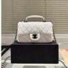“The Chanel Vintage Small Classic Flap in white radiates timeless charm, with its refined silhouette and striking black accents. A true icon of elegance, it embodies sophistication and prestige, making it the ultimate statement of luxury.