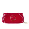 This Gucci Blondie Chain Continental Wallet is crafted from red patent. The interior features card slots, two bill compartments, and a coin pocket. A sparkling Round Interlocking G, a geometric interpretation of a logo from the Gucci archives, adorns the front.