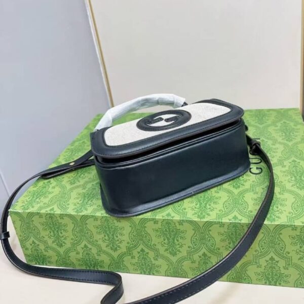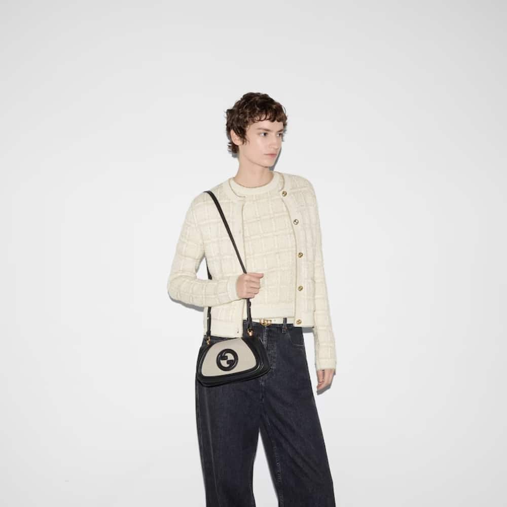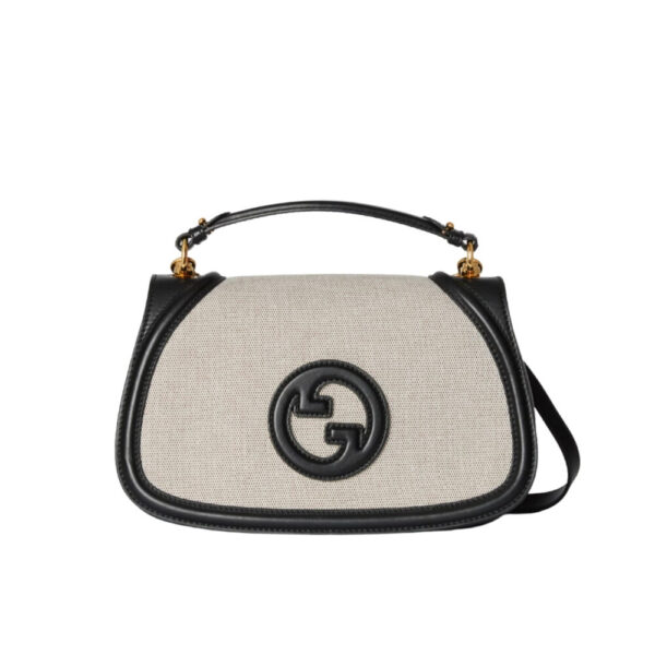 The new Gucci Blondie bag, whose distinctive logo first appeared in the House’s collections in the early 1970s, weaves together past and present in a fusion of nostalgia and modernity. This medium top handle bag with a detachable and adjustable leather shoulder strap is crafted from natural canvas.