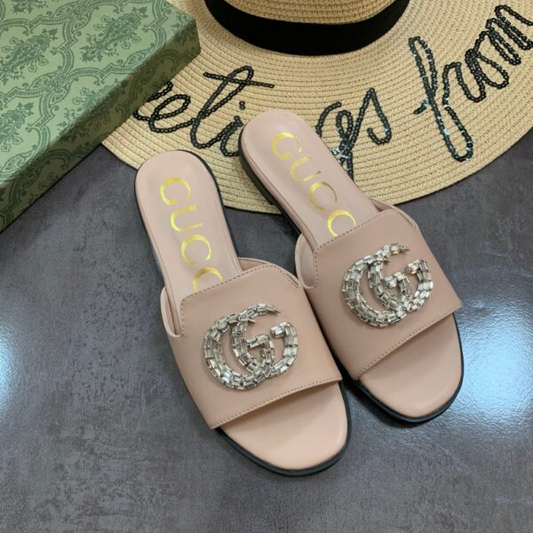 The Gucci Double G Slippers in beige exude understated elegance, with sleek lines elevated by the shimmering beaded emblem. Designed for effortless comfort and iconic allure, they bring a refined touch of luxury that affirms both prestige and timeless style.