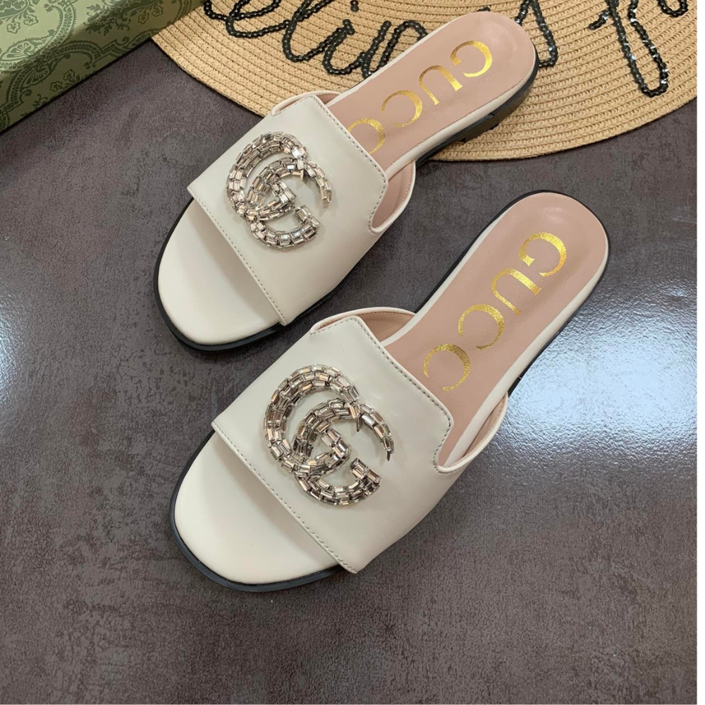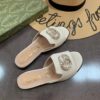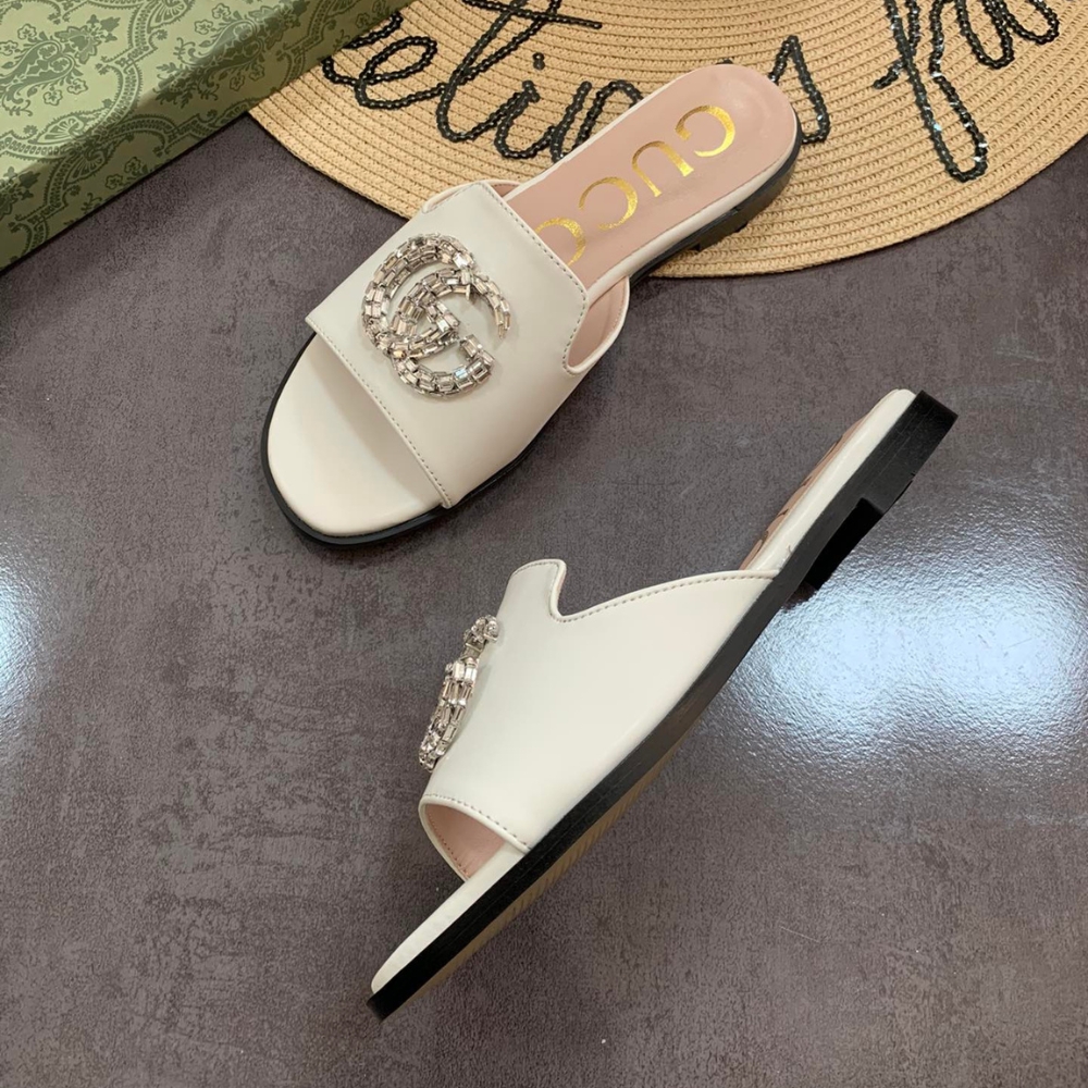 Gucci Double G Slippers Leather Beaded In White
