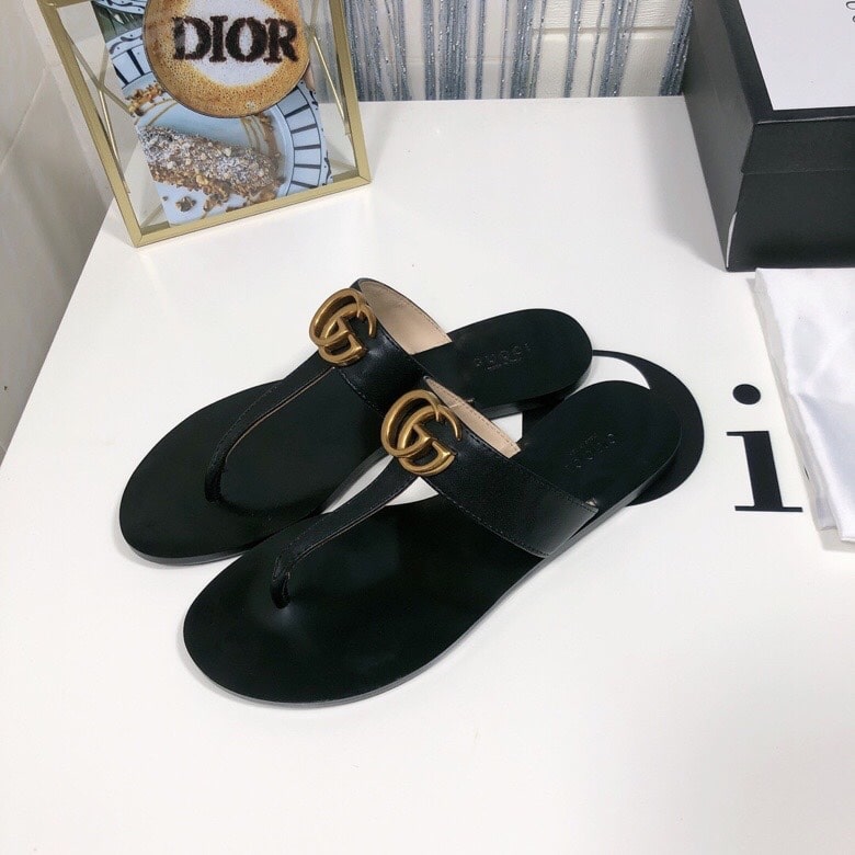 Gucci Double G Thong Leather Black ‎497444 A3N00 1000