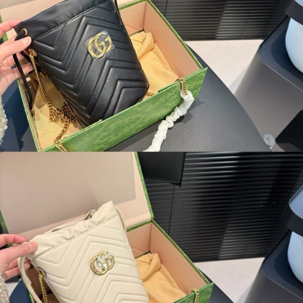 Gucci GG Marmont Matelassé Chevron Mini Bucket Bag White