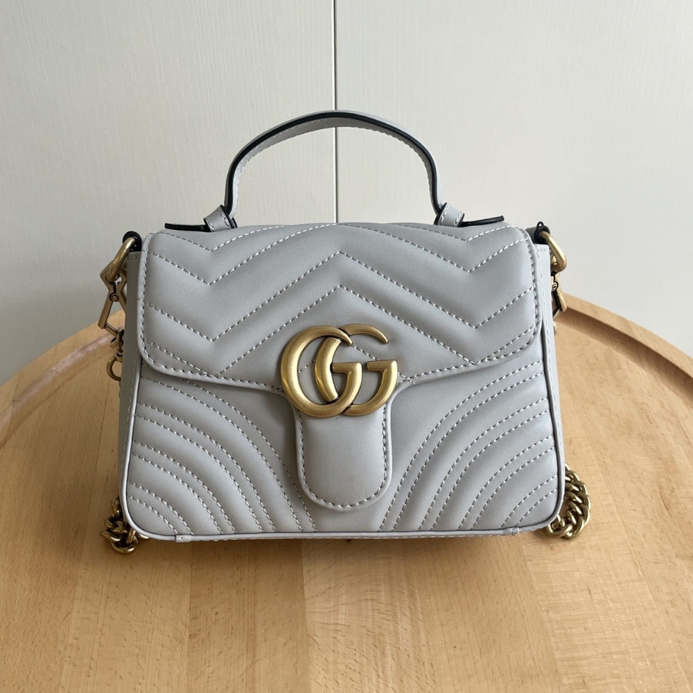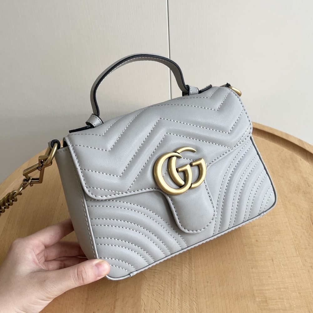 Gucci GG Marmont Matelassé Chevron Mini Top Handle Bag Light Grey