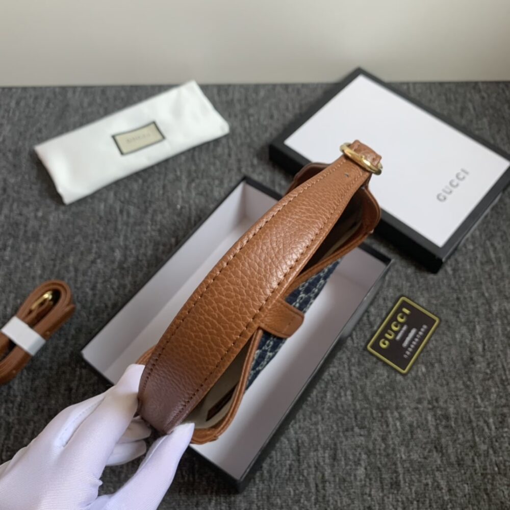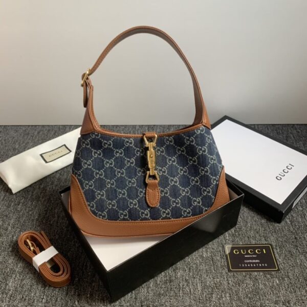 Gucci Jackie 1961 Small Shoulder Bag Blue And Ivory channels effortless sophistication with its graceful silhouette and iconic piston closure. A symbol of timeless prestige, it elevates any ensemble with a whisper of heritage and modern elegance.