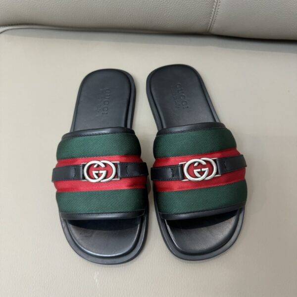 Gucci Men Slide Sandal With Interlocking G Green And Red