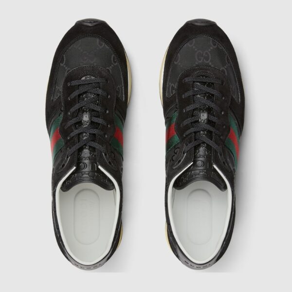 The Gucci Re-Motion Sneaker in Black channels effortless sophistication with its sleek silhouette and signature stripe detailing. A perfect fusion of sporty energy and timeless luxury, it embodies the confident stride of modern refinement.