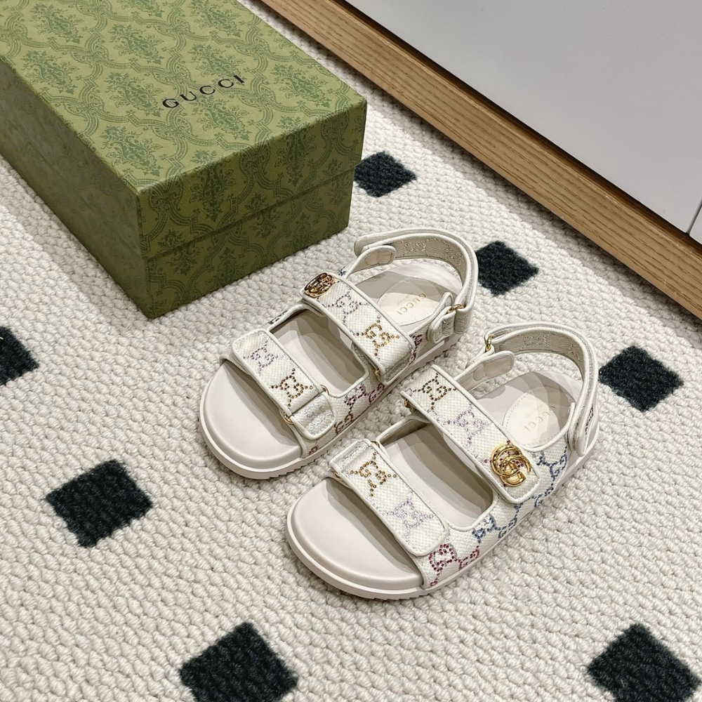 Gucci Moritz GG Monogram Sandals Beige Ebony