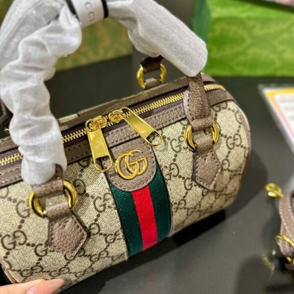 Gucci Ophidia Gucci Small Boston Bag Beige And Dark Brown GG Monogram