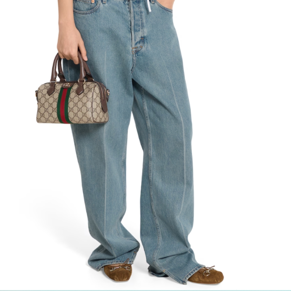 The Ophidia collection evokes the House’s heritage with the signature Web stripe and Double G emblem in light gold-toned finish. The styles are crafted from soft GG Monogram coated fabric, featuring green cotton lining inside.