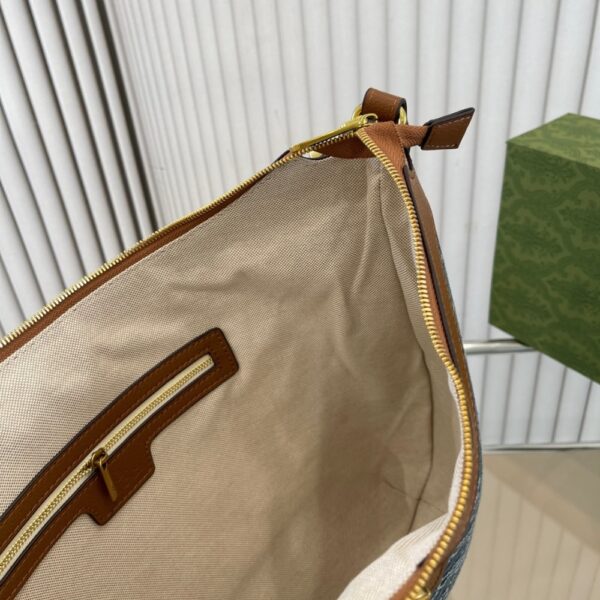 The Gucci Ophidia Jumbo GG Denim Hobo Bag blends laid-back sophistication with heritage detail. Its relaxed silhouette, highlighted by the iconic Web stripe and Double G emblem, exudes effortless elegance and modern versatility.