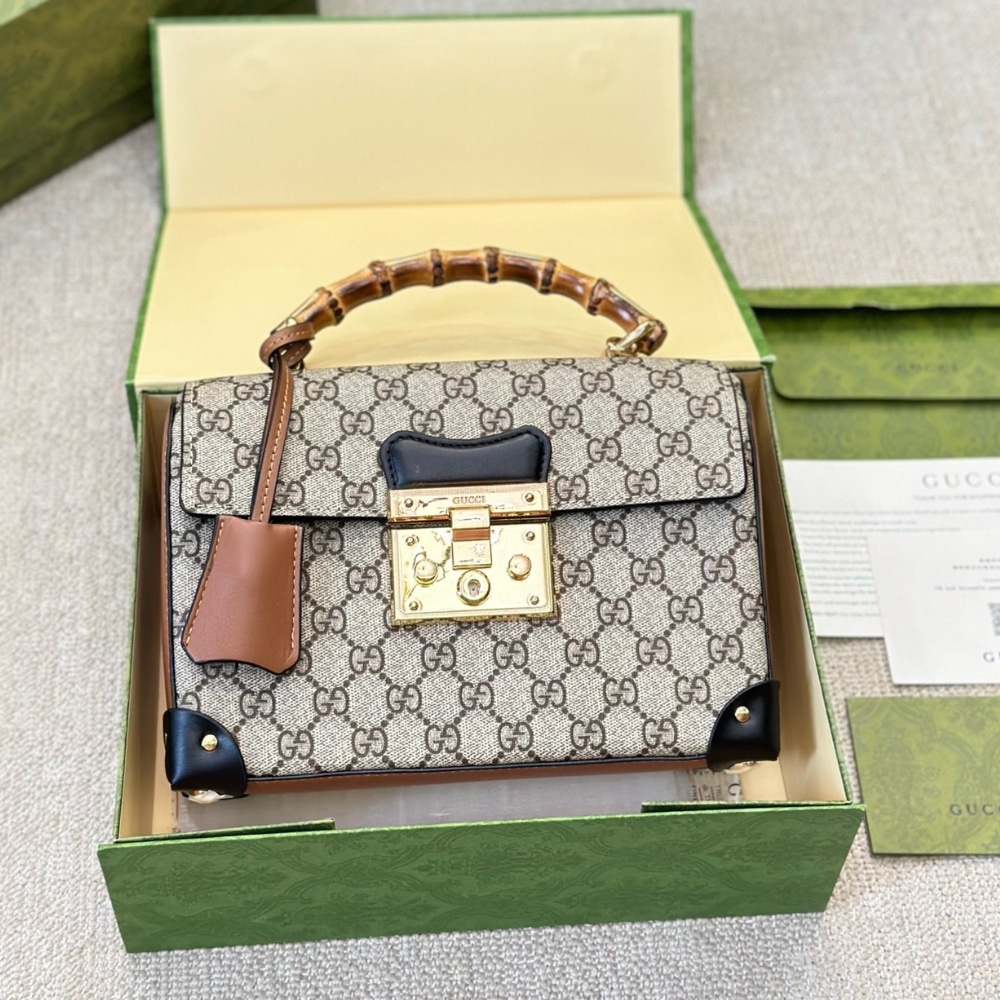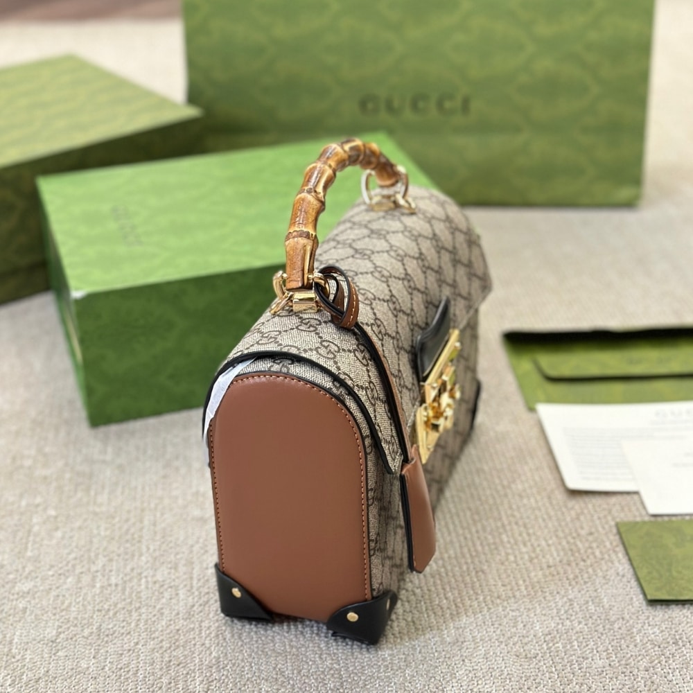 Gucci Padlock Bamboo Handle GG Supreme Handbag Brown