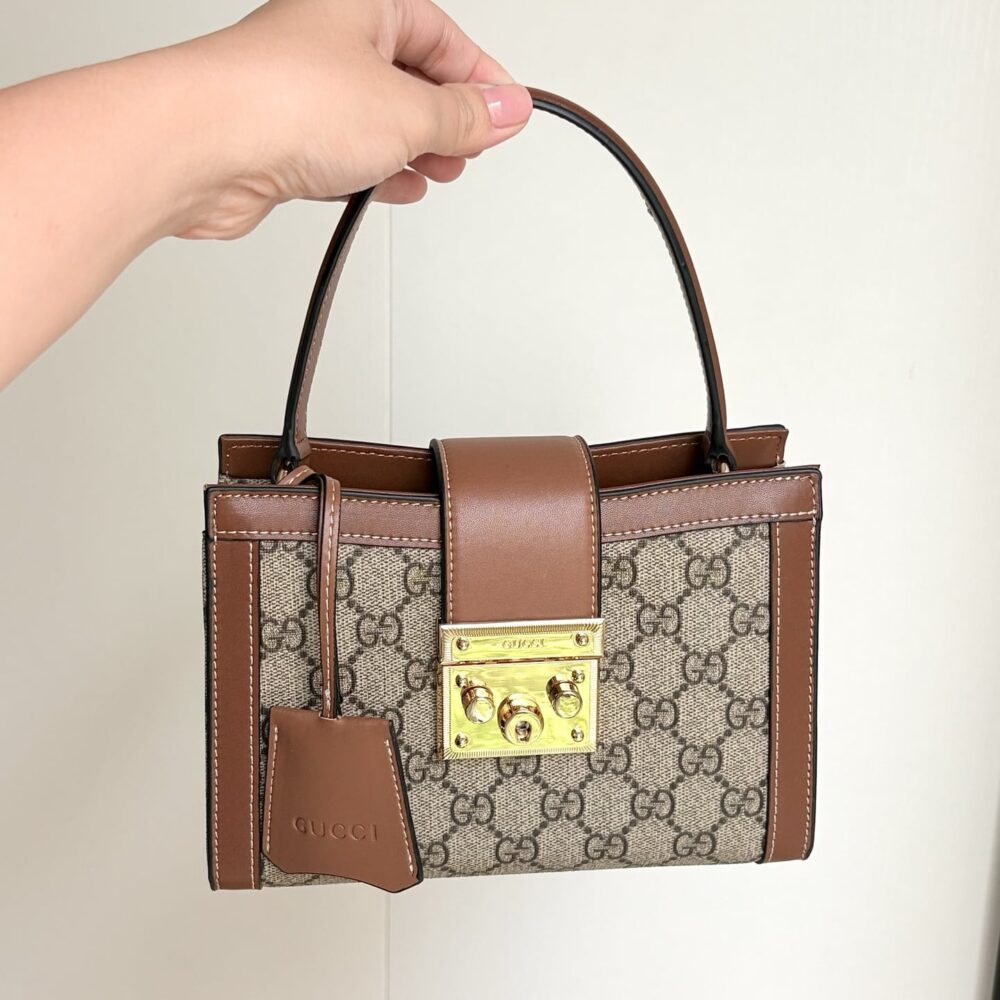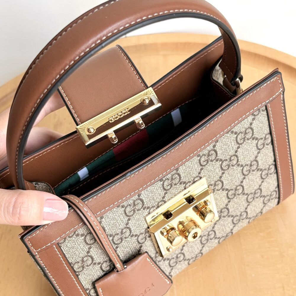 Gucci Padlock Small Top Handle Bag Beige And Dark Brown