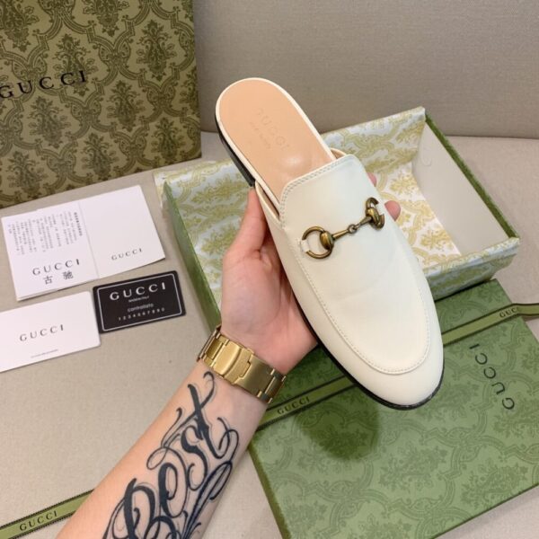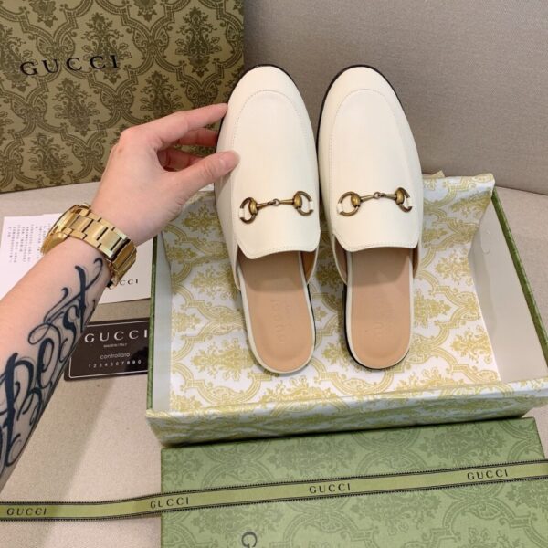 The Gucci Princetown Slipper in white is a symbol of effortless sophistication, blending iconic design with timeless elegance. Its sleek silhouette and signature detail embody refined luxury, making it a must-have statement piece for those who appreciate prestige and style.