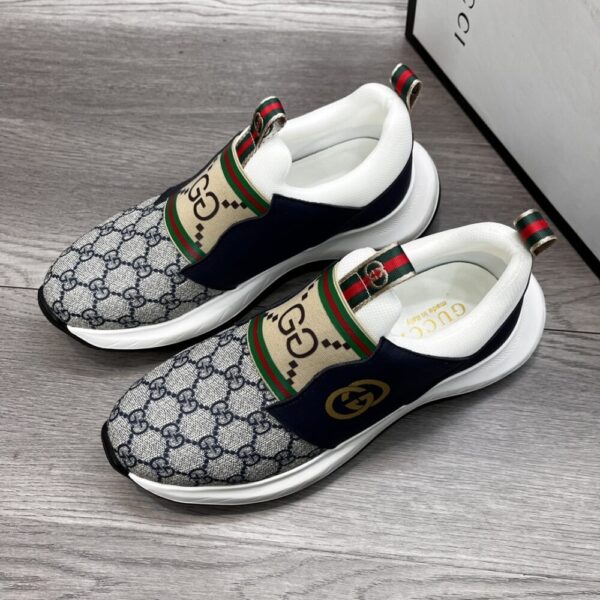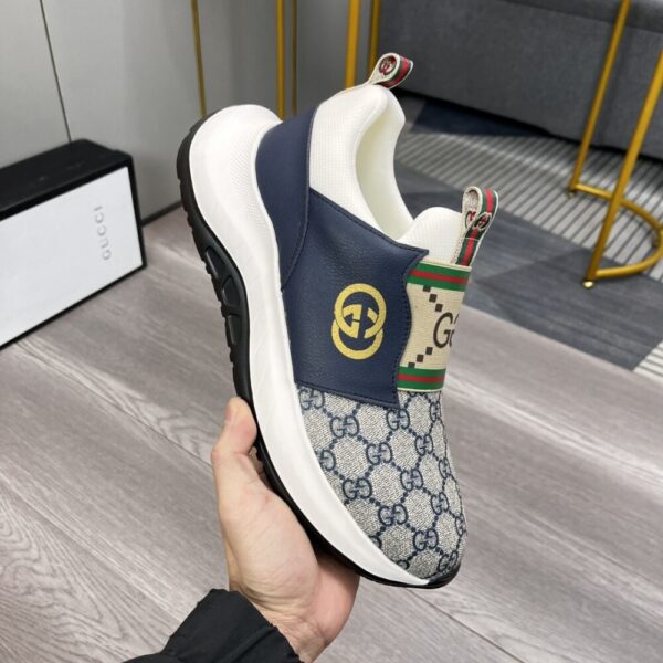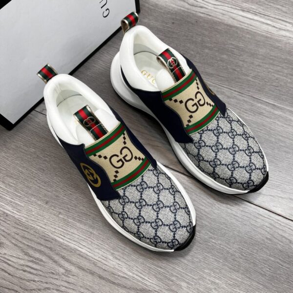 The Gucci GG Canvas Sneaker in Blue and White captures modern luxury with a sporty yet unmistakably refined aesthetic. Designed for effortless confidence, it merges signature house heritage with everyday versatility, making every step a statement of prestige.