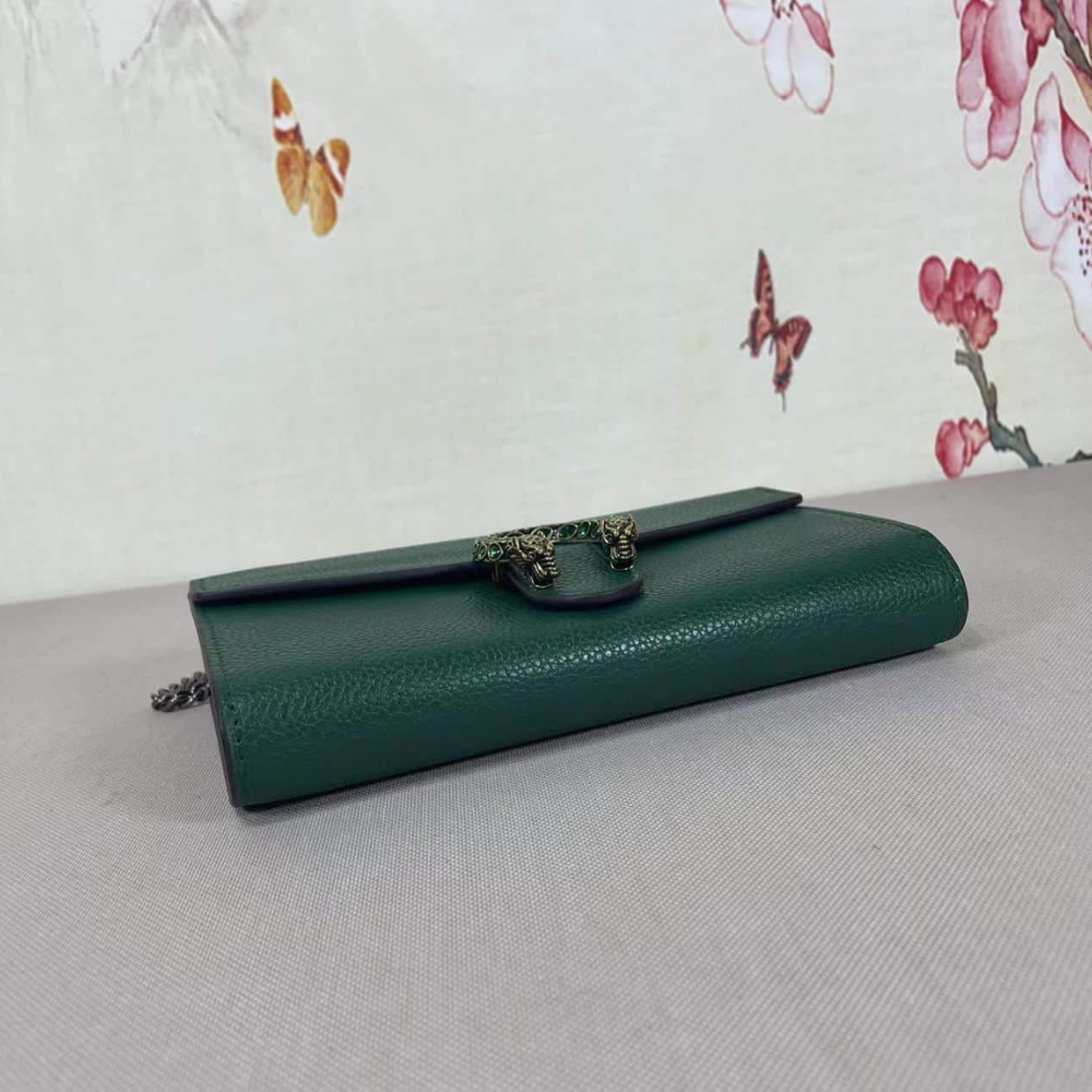 The Gucci Women Dionysus Super Mini Emerald Green captivates with its sleek contours and iconic tiger-head clasp, radiating an aura of bold sophistication. A statement of refined confidence, it transforms every glance into admiration and every moment into a celebration of your impeccable style.