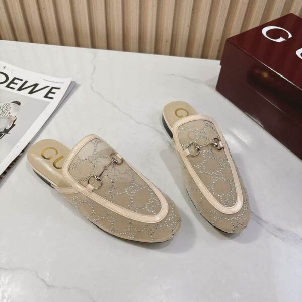 Gucci Women GG Crystal Princetown Slipper Beige ‎835484 FAEQ0 9941