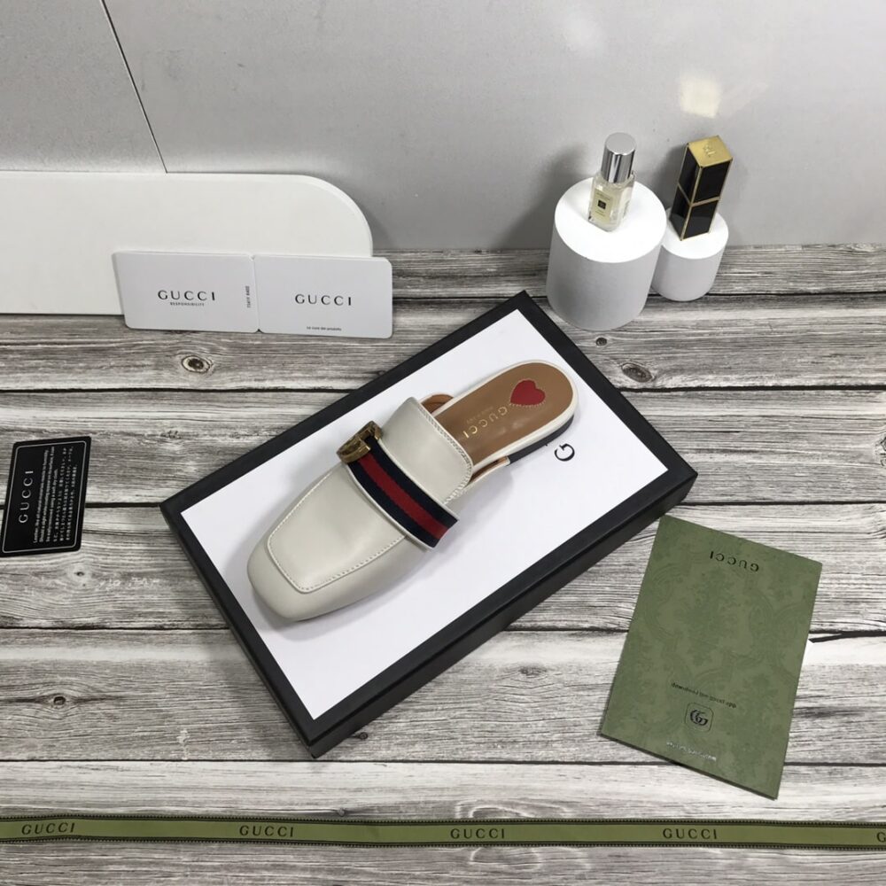 The Gucci Princetown Leather Slipper in white radiates timeless sophistication, merging sleek design with the house’s emblematic detailing. Its effortless silhouette and iconic allure elevate any ensemble, embodying refined comfort and undeniable prestige for the modern luxury enthusiast.
