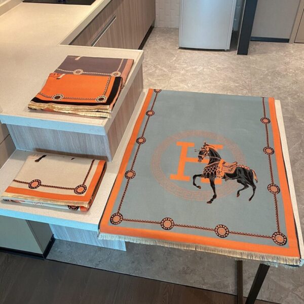 The Hermès Cashmere Muffler in blue captures the Maison’s equestrian heritage with bold artistry and refined design. Its striking motif and timeless elegance make it a statement of sophistication, perfect for those who embody prestige and elevated style.