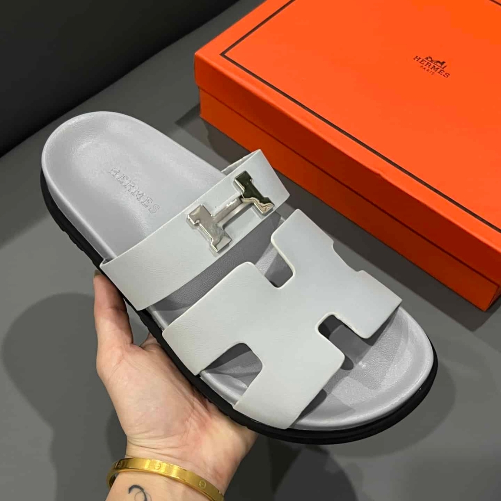Hermes Chypre Sandal H Logo Silver Hardware Light Grey