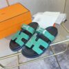 Hermes Chypre Sandal Suede H Logo Silver Hardware Green