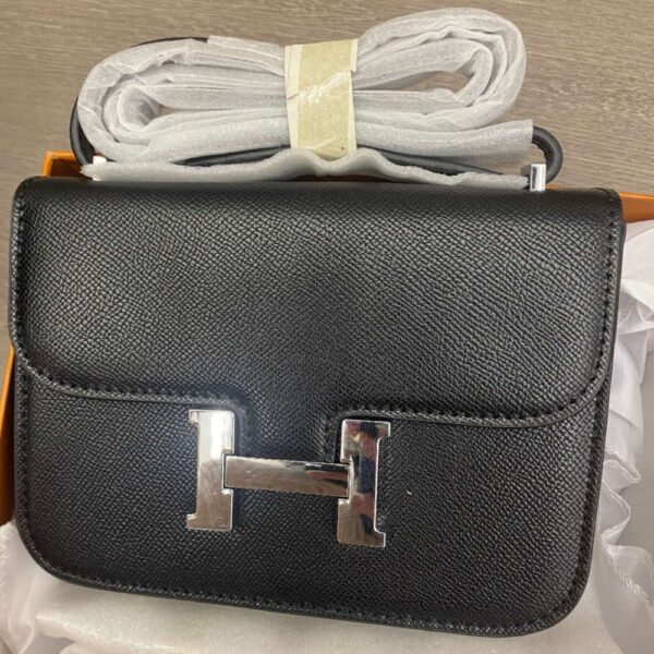 The Hermès Constance in Black with silver hardware radiates timeless sophistication, defined by its sleek silhouette and iconic “H” clasp. A symbol of modern elegance and prestige, it elevates every ensemble with an aura of effortless luxury.