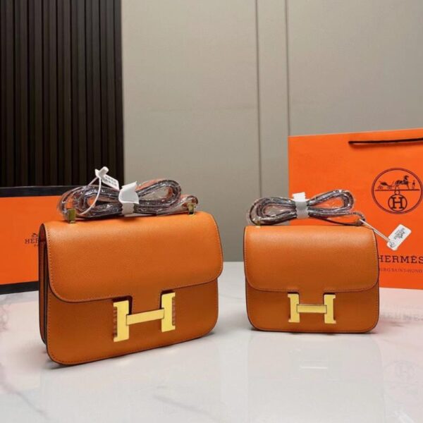 The Hermès Constance Mini in radiant orange with gold-toned hardware is a true symbol of timeless allure and modern sophistication. With its sleek silhouette and iconic “H” clasp, it elevates every moment, affirming your prestige and unmatched sense of style.
