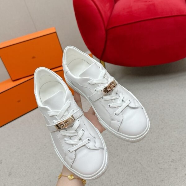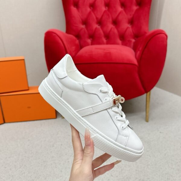 The Hermès Day Sneaker Blanc radiates understated elegance with its sleek silhouette and refined detailing, embodying timeless sophistication. Designed for effortless comfort and elevated style, it captures the aura of modern luxury that seamlessly enhances every step.
