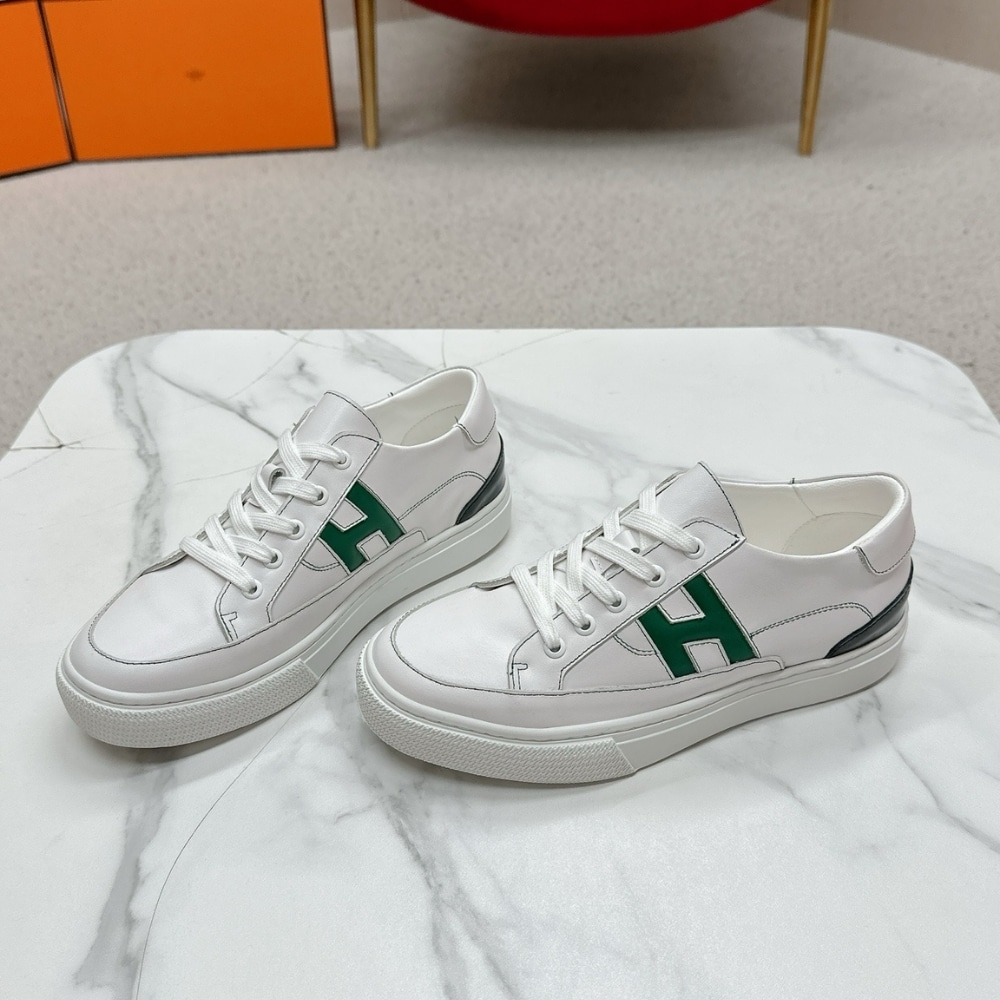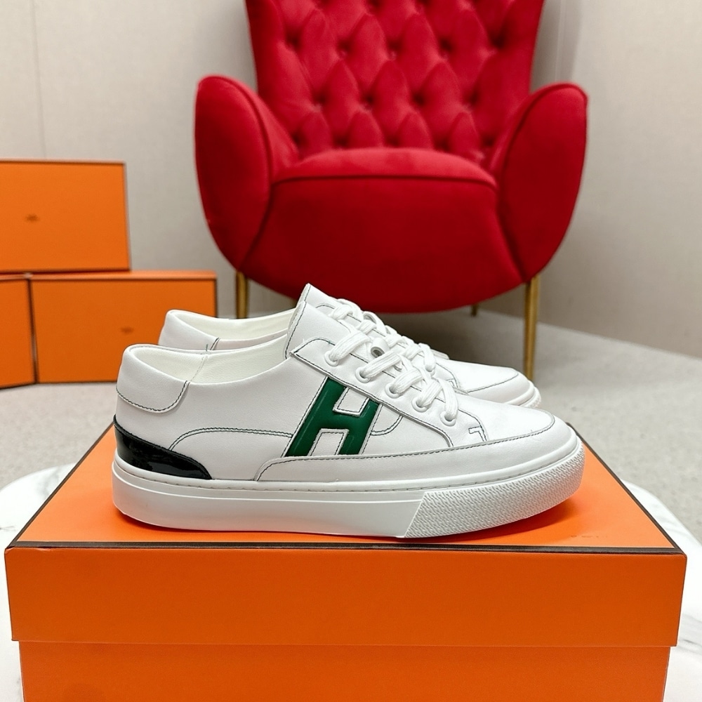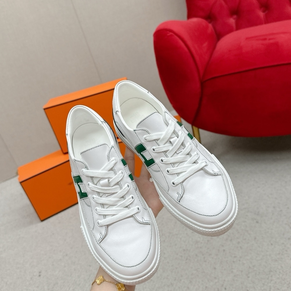 The Hermès Deep Sneaker Blanc and Vert Bouteille combines timeless elegance with a bold modern edge, highlighted by the striking H detail. Its refined silhouette and effortless comfort make it a statement of prestige, perfect for those who embody luxury in every step.