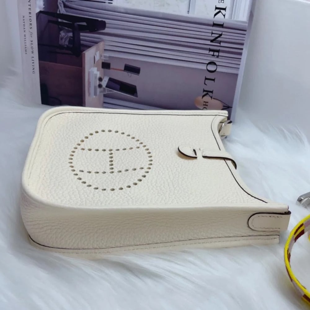 The Hermès Evelyne Amazone in White embodies timeless sophistication with its sleek silhouette and iconic perforated “H.” A statement of effortless luxury, it elevates every ensemble with refined elegance and modern prestige.