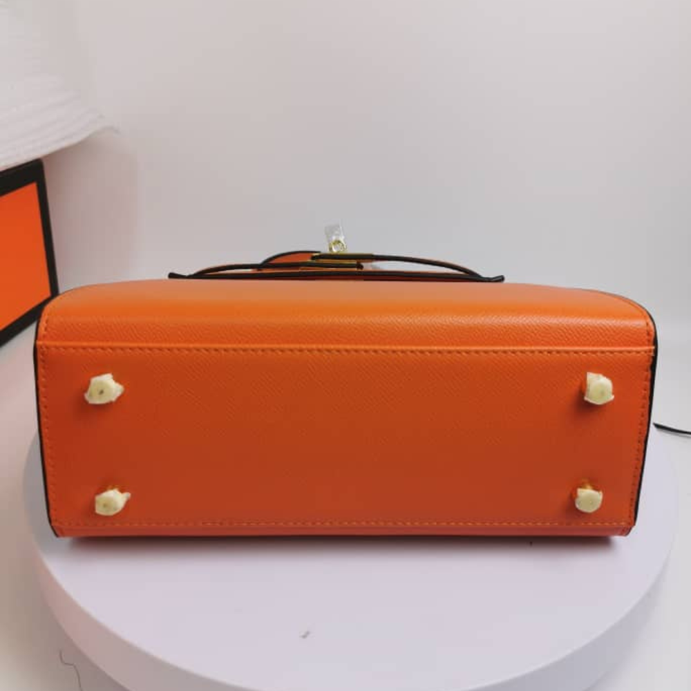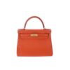 The Hermès Kelly 25 in vibrant orange radiates timeless elegance and bold sophistication. With its iconic silhouette and striking hue, it is a symbol of prestige and refined taste, perfect for those who command attention with effortless grace.
