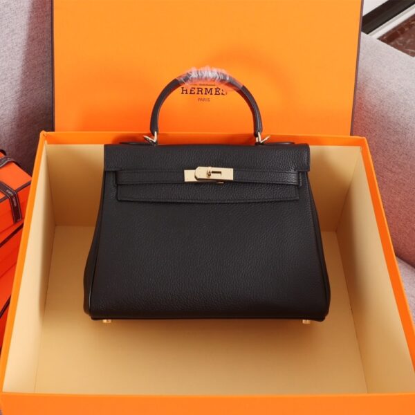 The Hermès Kelly Togo Handbag in Black radiates timeless sophistication with its sleek silhouette and iconic design lines. A symbol of power and elegance, it elevates every moment with an aura of prestige and effortless style.