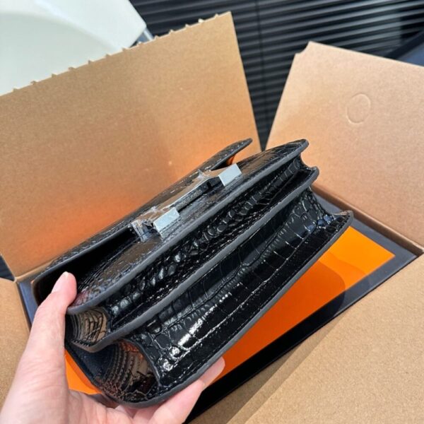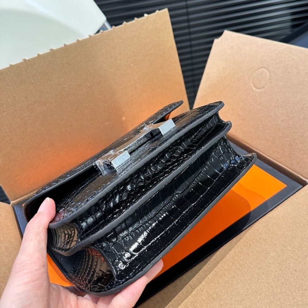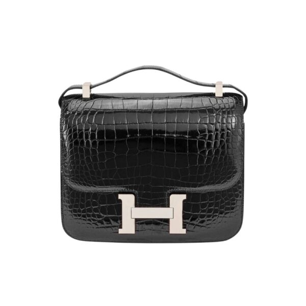 Hermes Mini Constance 19 Shiny Alligator Palladium Hardware Black