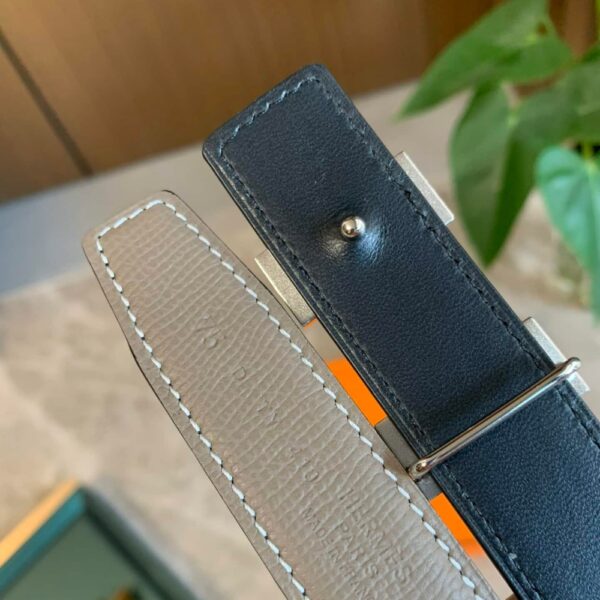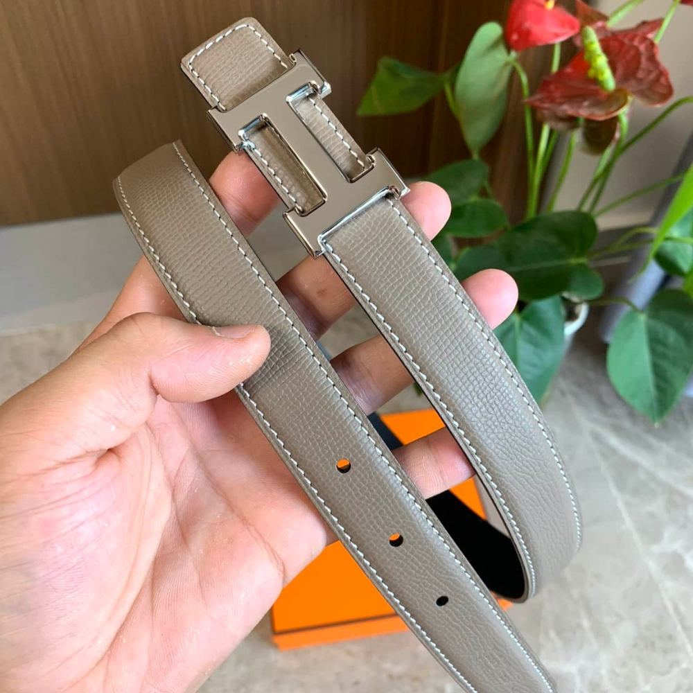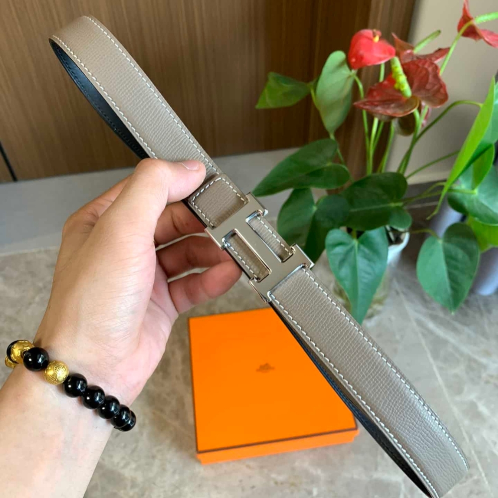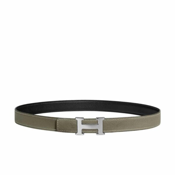 Hermes Mini H Belt Buckle And Reversible Leather Strap Silver Grey