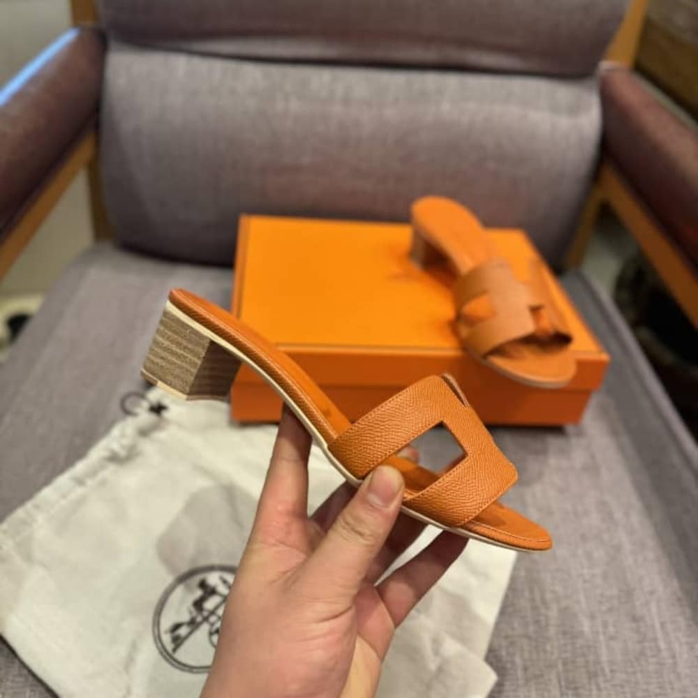 The Hermès Oasis Sandals in orange embody timeless refinement with the maison’s iconic “H” silhouette, elevated by a graceful block heel for modern elegance. Designed for effortless comfort and prestige, they transform every step into a radiant statement of luxury style.