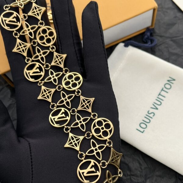The Louis Vuitton LV Lace Bracelet unveils a refined interplay of the Maison’s legendary motifs, crafted into an intricate and elegant silhouette. A luminous statement of prestige and sophistication, it adorns the wrist with an aura of timeless luxury and modern allure.