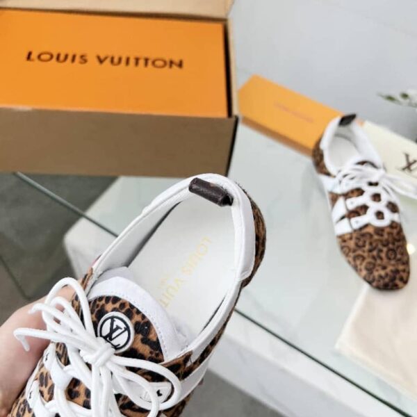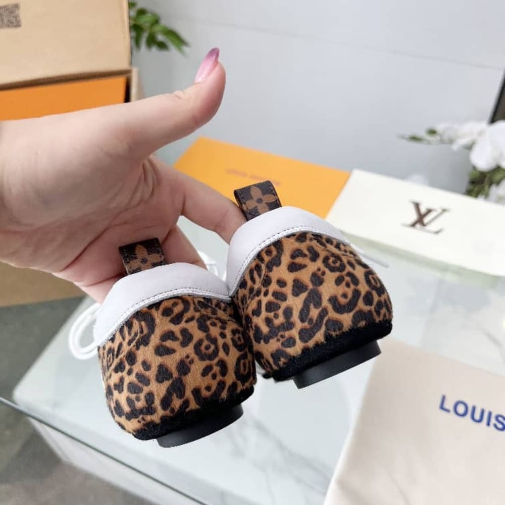 The Louis Vuitton LV Sneakerina Brown exudes bold sophistication with its striking leopard-inspired design and sleek contours. Effortlessly blending comfort and luxury, it elevates your presence with an aura of fearless elegance and timeless prestige.